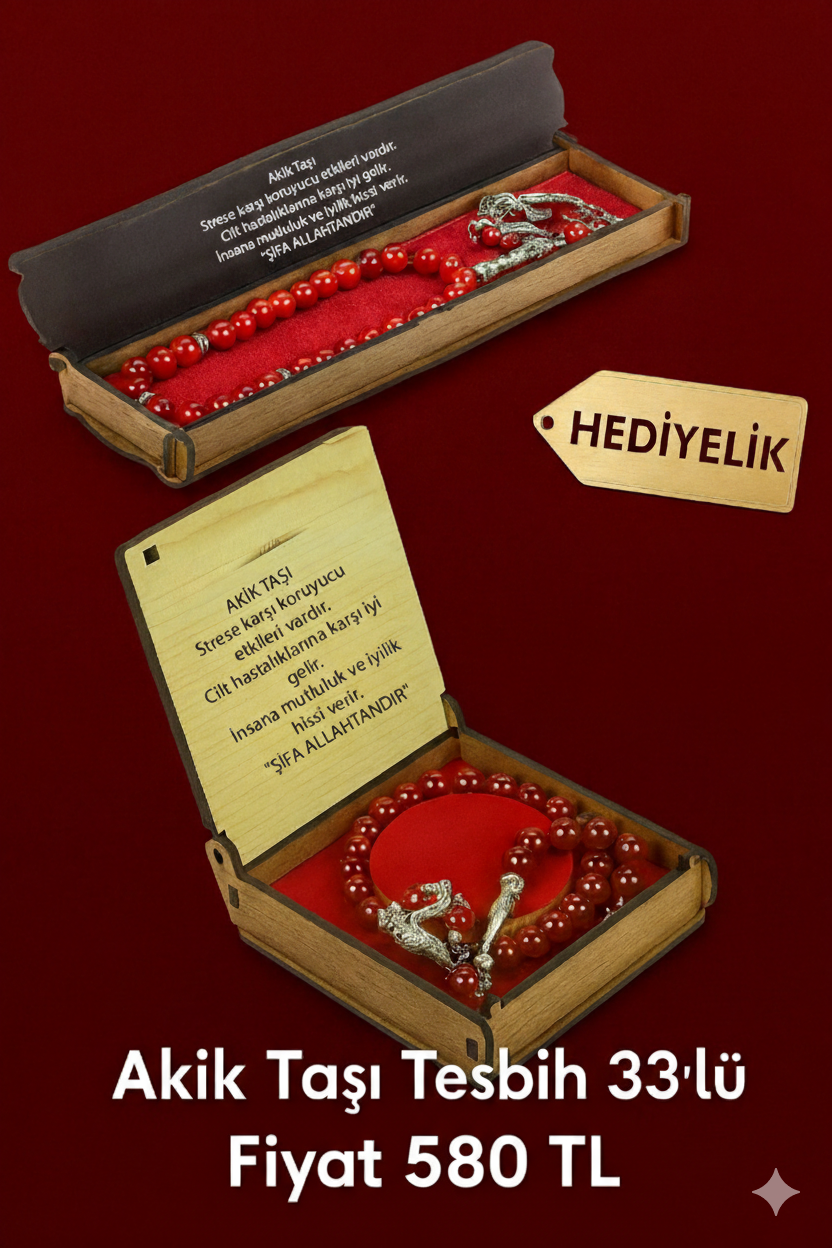 Değerli Taş Tesbih Seçenekleri: Panelimizde sadece standart ürünler değil; zarafetiyle bilinen 33’lü Firuze Taşı ve Akik Taşı tesbihler ile günlük kullanıma uygun 99’lu tesbih çeşitleri yer almaktadır.